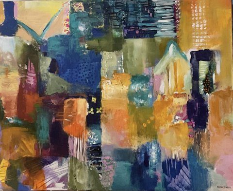Byens farvespil II 80X100 cm Akryl på lærred